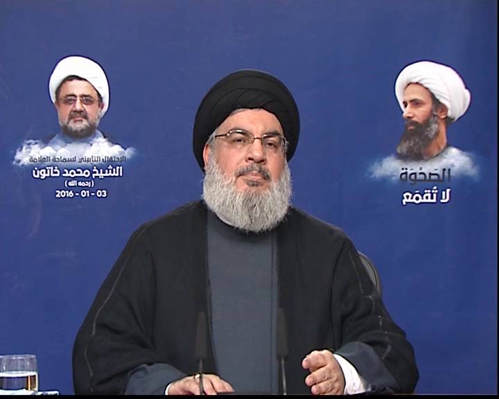 ووصف نصر الله جريمة إعدام الشيخ النمر بالحادثة المهولة والضخمة جداً، وأنه لا يمكن الإستخفاف بها، مؤكدا ” الرد على جريمة اغتيال الشيخ النمر هو في المجاهرة بكلمة الحق بوجه الظالمين”.