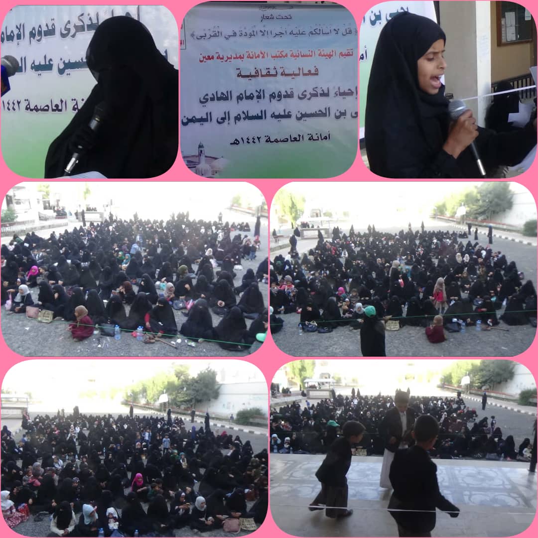نظمت القطاع النسائي بمديرية معين بالأمانة، عصر اليوم، فعالية خطابية لإحياء ذكرى قدوم الإمام الهادي إلى اليمن.