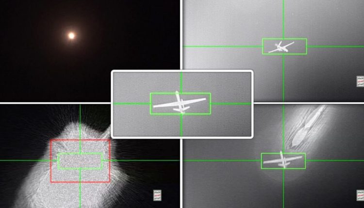 ووزع الإعلام الحربي مساء الأربعاء 29 مايو أيار 2024م مشاهد لعملية إسقاط الدفاعات الجوية للطائرة الأمريكية MQ-9 أثناء قيامها بمهام عدائية في أجواء محافظة مأرب.
