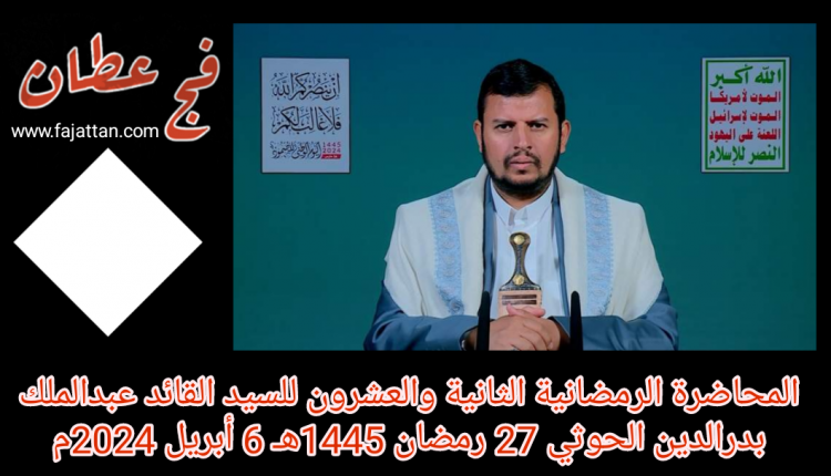 المحاضرة الرمضانية الثانية والعشرون للسيد القائد عبدالملك بدرالدين الحوثي 27 رمضان 1445هـ 6 أبريل 2024م