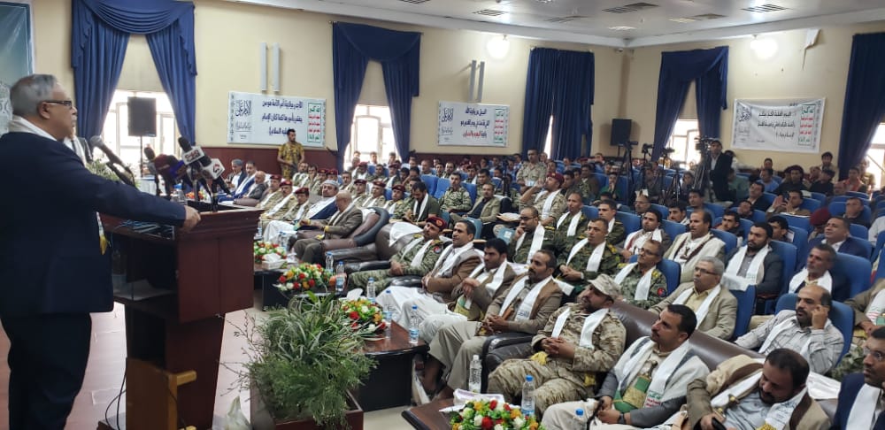 وقال “من المهم أن نشير إلى أننا نحتفل للعام الثامن بهذا اليوم ونحن تحت العدوان الامريكي السعودي الإماراتي الصهيوني، الذي دفع شعبنا اليمني ثمنا باهظا في سبيل التصدي له، ولكي لا ينكسر أو ينهزم في وجه طغاة العصر”.