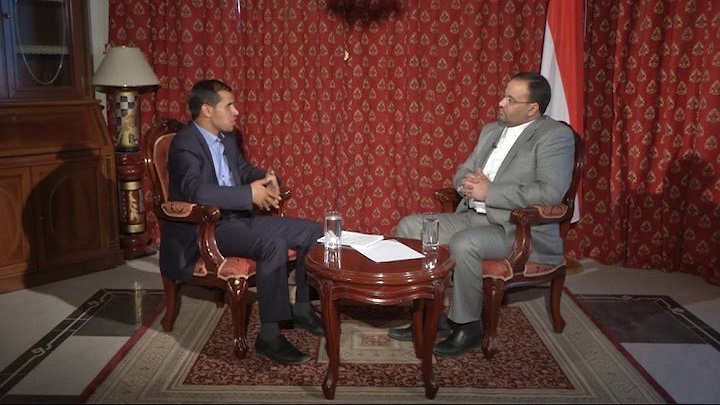الرئيس الصماد: أولا تعرف بالنسبة للزخم الشعبي، كائنا من كان نحن نحترم راي شعبي لكن في الإطار الوطني الذي يطالب بمطالب بناءة أو محقة لكن أن تكون تحت يافطة الخارج هذا شيء خطير جدا وينبئ عن سقوط عملاء الرياض في سبيل تنفيذ مشاريعهم، لذلك كما قلت لك من هم موجودون في الرياض هم يأتي لينفذوا مشروع أمريكي سعودي إماراتي لا يختلفوا تماما عمن هم يتبنون هذا المشروع من أصله، فهؤلاء فقط عبارة عن أدوات ويمتطيها العدوان لتحقيق أغراضه وأهدافه في اليمن.