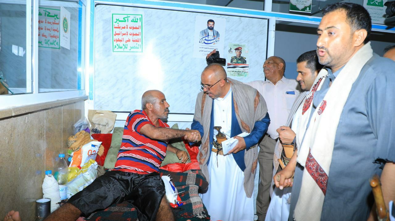 وخلال الزيارة تبادلوا مع الجرحى التهاني والتبريكات العيدية، ناقلين لهم تحيات وتبريكات قائد الثورة السيد عبدالملك الحوثي ورئيس المجلس السياسي الأعلى بهذه المناسبة الدينية الجليلة وتمنياتهما للجرحى بالشفاء العاجل، وقدموا لهم الهدايا النقدية والعينية.