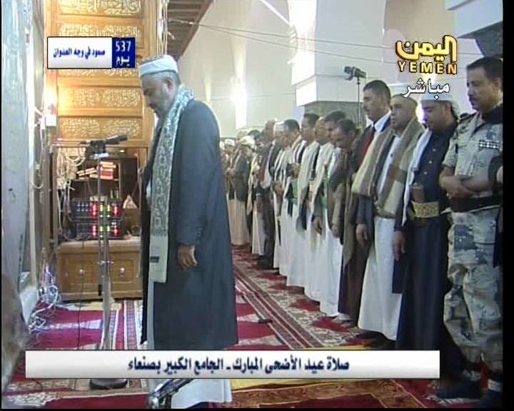 حيث توافدت جموع المؤمنين الى الجامع الكبير وجامع البليلي بالعاصمة صنعاء لأداء صلاة العيد. كما تناولت خطبتا العيد أهمية الحج كمناسبة جامعة للمسلمين وأهمية البراءة من المشركين في يوم الحج الأكبر.