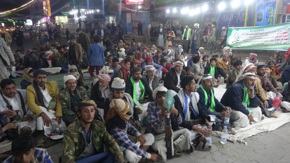 أقيم مساء اليوم بحي بني حوات بالمطار مديرية بني الحارث امسية ليلية احيت ذكرى مولد النبي المصطفى محمد صل الله عليه وآله وسلم