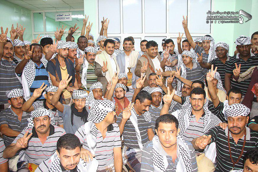 بالصور.. عضو المجلس السياسي الأعلى الحوثي يلتقي الأسرى المحررين من سجون العدوان.