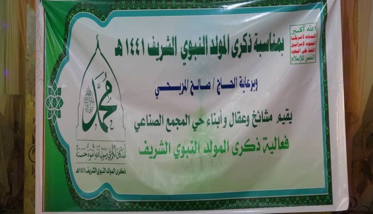 بحضور رئيس وأعضاء اللجنة العليا للإنتخابات أبناء حي المجمع الصناعي بمديرية الوحدة يحييون ذكرى المولد النبوي الشريف بفعالية ثقافية