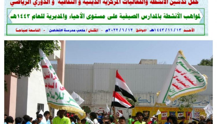 تدشين الأنشطة الثقافية والدوري الرياضي لمواهب المدارس الصيفية في مديرية الصافية بالأمانة