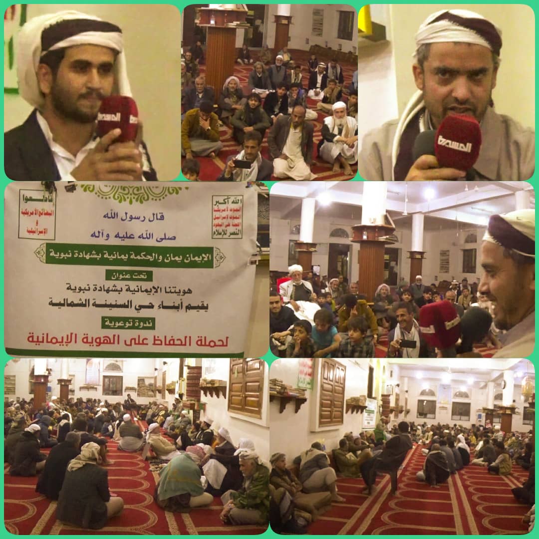 دشن المكتب الإشرافي لأنصار الله بحي السنينة الشمالية مساء اليوم حملة الهوية الإيمانية. وافتتحت الندوة، التي أقيمت بمسجد عمر بن عبدالعزيز بالحي، بتلاوة عطرة لأيات محكمات من كتاب الله الكريم. بعد ذلك ألقى الأستاذ المجاهد خالد المداني المشرف العام لأمانة العاصمة محاضرة بعنوان “الهوية الإيمانية بشهادة نبوية” أشار فيها إلى أن النبي الأعظم فضل اليمن بعبارة “الإيمان يمان” والتي لها من الدلالات والعمق الكثير من المعاني أكثر من لو أنه قال “الشعب اليمني شعب مؤمن” مؤكدا أن الله تعالى وعد الذين يتصفون بصفة الإيمان بالنصر والتوفيق حين قال “إن الله يدافع عن الذين آمنوا”. وأضاف المداني أن الله منح اليمنيين وسام الإيمان عن طريق نبيه حين قال الإيمان يمان والحكمة يمانية مضيفا أن هناك من يحسدون اليمنيين على الوسام الذي منحه الله لليمنيين وهو ما يمكن ملاحظته من كلام قنوات الوهابية التي تستنكر وتستكثر وسام الايمان والحكمة على اليمنيين موضحا أن من دلالات قول رسول الله الإيمان يمان والحكمة يمانية هو انتساب الإيمان الكامل والحقيقي لأهل اليمن. ودعا الأستاذ خالد المداني أهل اليمن إلى التمسك بهويتهم الإيمانية الحقيقية وتجسيدها في حياتهم قولا وعملا ليكونوا جديرين بهذا الشرف الذي أضفاه عليهم الرسول الأعظم صلوات الله عليه وعلى آله. يشار إلى أن حملة الهوية الإيمانية ستستمر ثلاثة أشهر وستتضمن العديد من الفعاليات والأنشطة التوعوية والثقافية. حضر الندوة الشيخ صالح الخولاني وكيل وزارة الأوقاف والأستاذ سامي شرف الدين المشرف العام للمديرية والأستاذ يحي الشاحذي أمين عام المجلس المحلي بالمديرية والشيخ أحمد صلح مدير شؤون الأحياء والشيخ محمد حزام العصري شيخ مديرية معين وعدد من الشخصيات الإجتماعية وجمع من المواطنين.