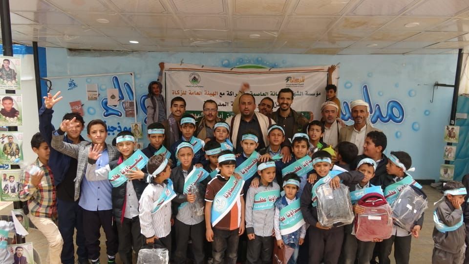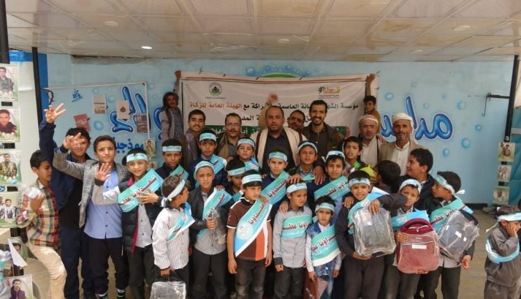 تدشين مشروع توزيع الحقيبة المدرسية لأبناء الشهداء في شعوب بالعاصمة صنعاء