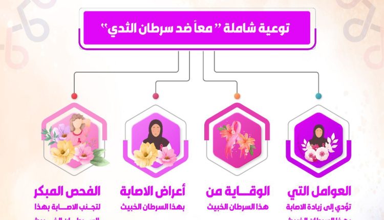 تهدف الحملة التي تستمر حتى 31 اكتوبر الحالي، إلى رفع مستوى الوعي المجتمعي حول سرطان الثدي وأعراضه وعوامل الإصابة به وطرق الوقاية منه وطرق الفحص الذاتي للكشف المبكر، بما يسهم في خفض معدلات الإصابة والوفيات الناتجة عنه.