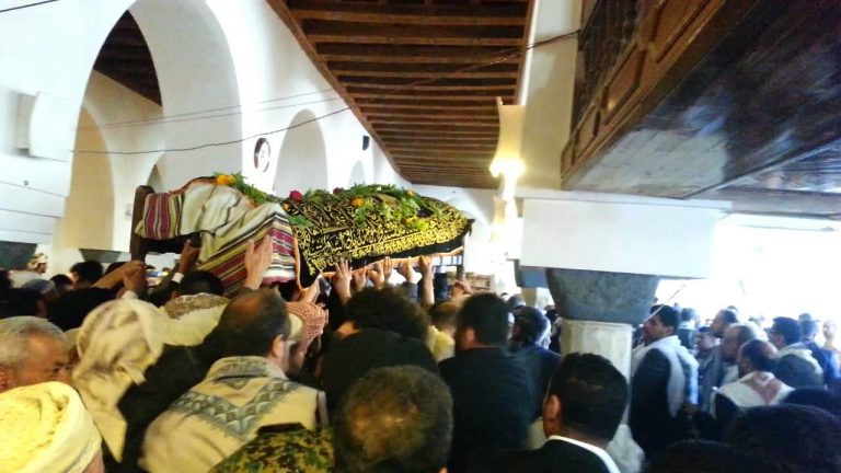 وشدد المشيعون على كافة أبناء الشعب اليمني للتوجه لرفد الجبهات بالرجال والمال رداً على ما يقوم به العدوان السعودي الامريكي من جرائم وحرب إبادة جماعية لأبناء الشعب.