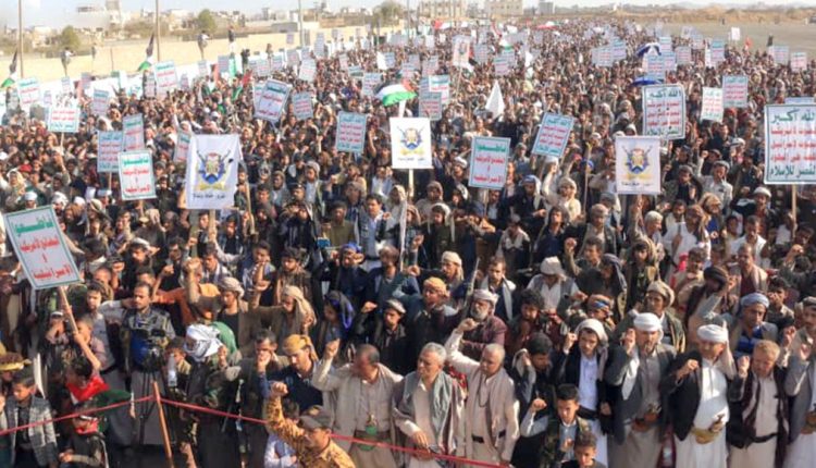 وجدد المشاركون في المسيرة تفويض قائد الثورة السيد عبدالملك بدر الدين الحوثي لاتخاذ كل القرارات والخطوات المناسبة لنصرة الأشقاء في غزة والرد على العدوان الأمريكي البريطاني على اليمن.
