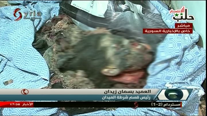 وقد بثت الإخبارية السورية صورا لآثار التفجير والدماء في قسم الشرطة، فيما قال رئيس القسم إن الطفلة كانت ضائعة بحسب بلاغ، وتم إحضارها إلى القسم بحثا عن أهلها، قبل أن يتم تفجير الطفلة عن بعد، مخلفة ضحايا.