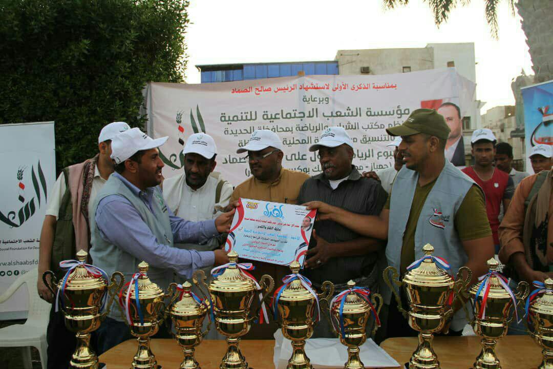 كما كرم مكتب الشباب والرياضة في محافظة الحديدة مؤسسة الشعب الاجتماعية للتنمية، تقديراً لجهودها في إنجاح ورعاية المهرجان الرياضي على كاس الرئيس الشهيد صالح الصماد.