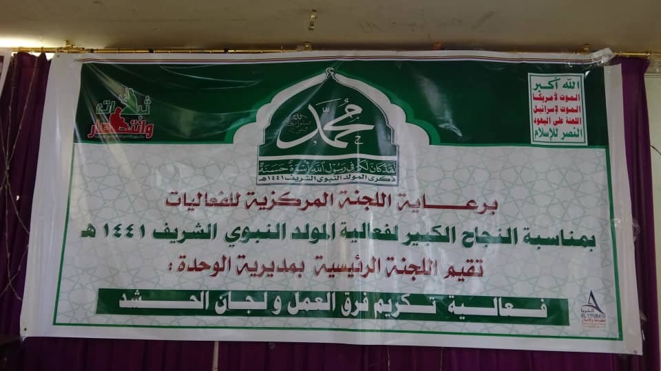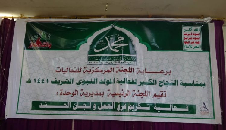 نظمت اللجنة المركزية للفعاليات بأمانة العاصمة اليوم حفل تكريمي للجان الحشد الخاصة بالمولد النبوي بمديرية الوحدة. وفي التكريم أشاد أمين العاصمة حمود عُباد بدور لجان الحشد في تعزيز التنسيق للمشاركة المجتمعية في الفعالية المركزية بذكرى المولد النبوي والذي توج بنجاحها. ونوه بجهود قيادة مديرية الوحدة والمكتب الإشرافي والمشائخ والوجهاء والأعيان والذين أسهموا في تنظيم وإنجاح الفعاليات بهذه المناسبة الدينية الجليلة .. معتبرا تكريم لجان الحشد تقديراً لجهودهم في إنجاح فعاليات المولد النبوي. وفي حفل التكريم بحضور نائب رئيس اللجنة التنفيذية للاحتفال بالمديرية عبدالله الظرافي وأمين محلي المديرية الدكتور خالد حميد، نوه مدير المديرية صالح الميسري، بجهود لجان الحشد وفرق العمل من القيادات المحلية والتنفيذية والإشرافية والأمنية والعقال والمشائخ. وتم خلال التكريم الذي حضره أعضاء المجلس المحلي والتنفيذي بالمديرية، وتخلله فقرات إنشادية وقصائد شعرية، تسليم أعضاء لجان الحشد وفرق العمل شهادات تقديرية.