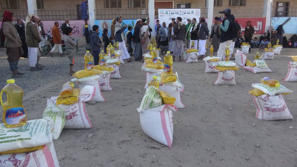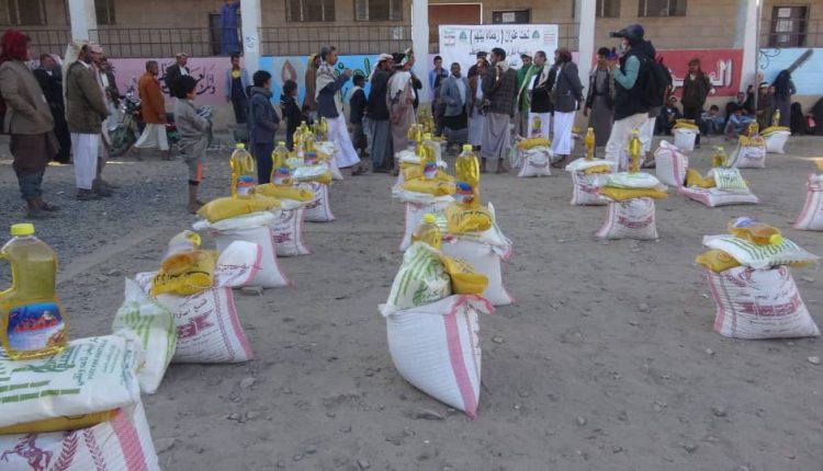 توزيع 300 سله غذائية بحي الحتارش بمديرية بني الحارث