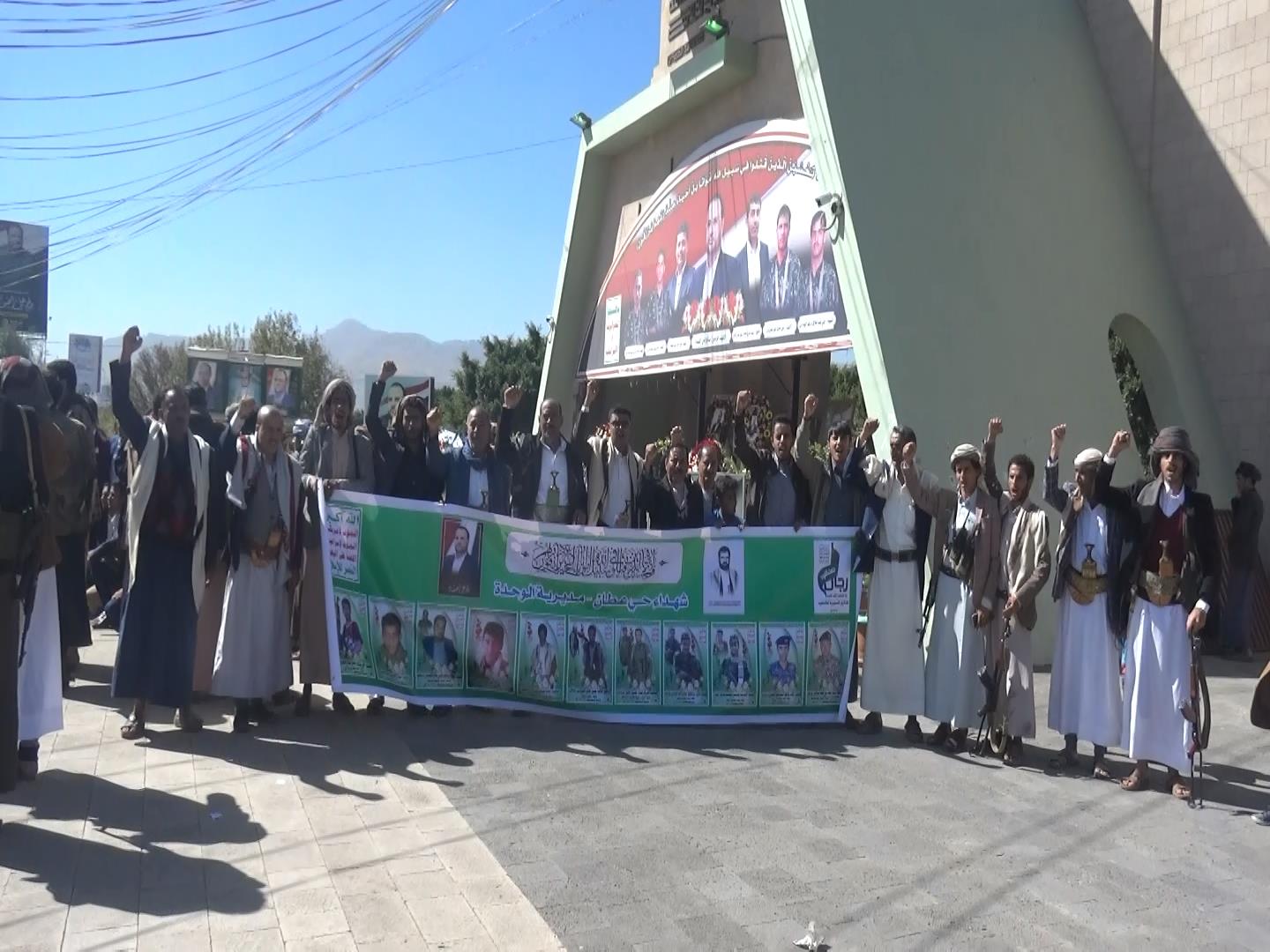 نظم أبناء حي عطان بمديرية الوحدة صباح اليوم الأربعاء معرض لصور الشهداء في الحي ووقفة شعبية مجتمعية لأهالي الحي أمام جامعة الملكة أروى تحت عنوان (شهداؤنا -عظماؤنا )
