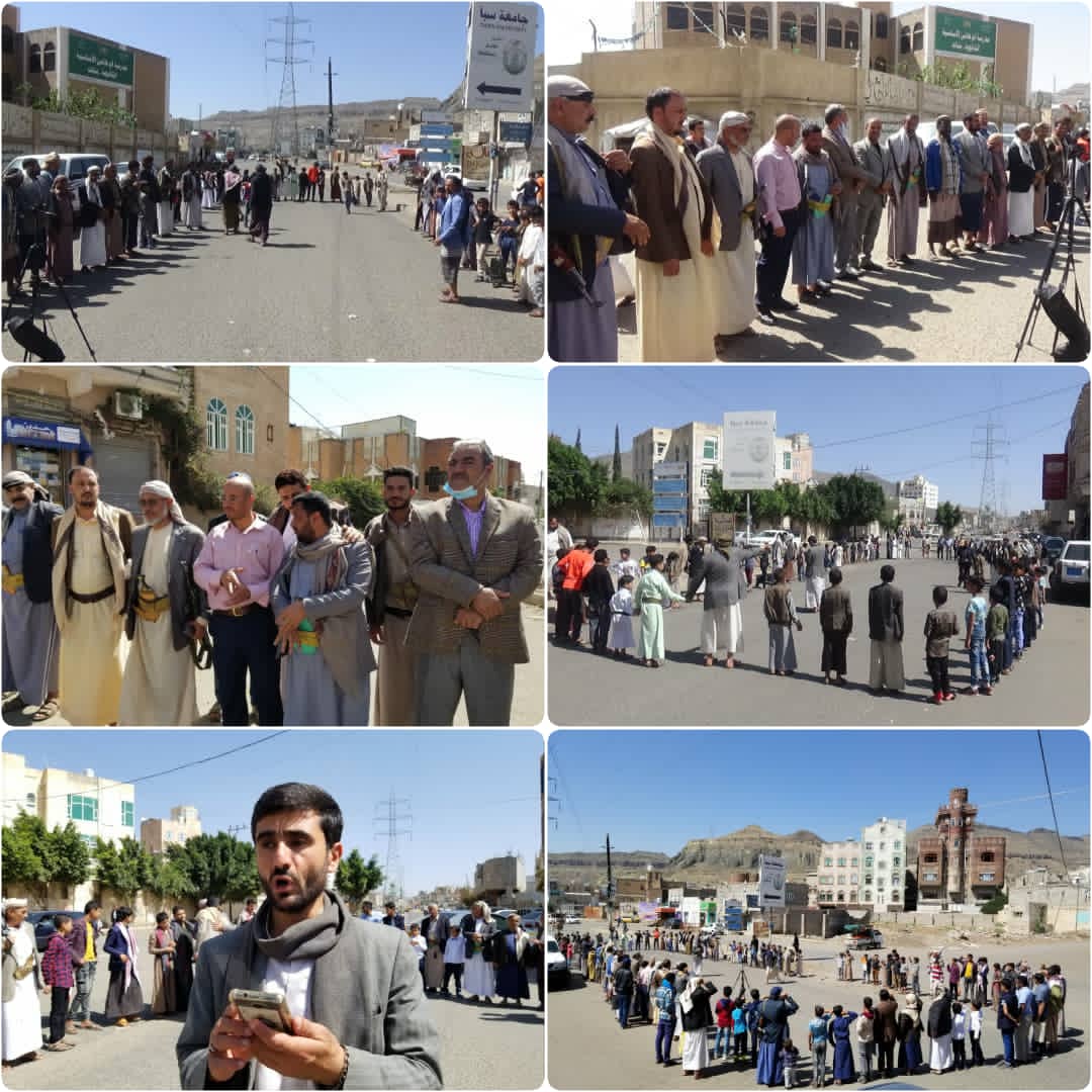 كما أقام أبناء مربع الآنسي بحي عصر وقفة مماثلة أكدوا في بيانها على أن القضية الفلسطينية وتحرير المقدسات من إحتلال الصهاينة وأزلامهم أمر لا مفر منه خصوصا وأن معركة سيف القدس قد أسقطت مشاريع التطبيع مع اليهود المحتلين التي سارعت لها بعض الأنظمة العربية العميلة.