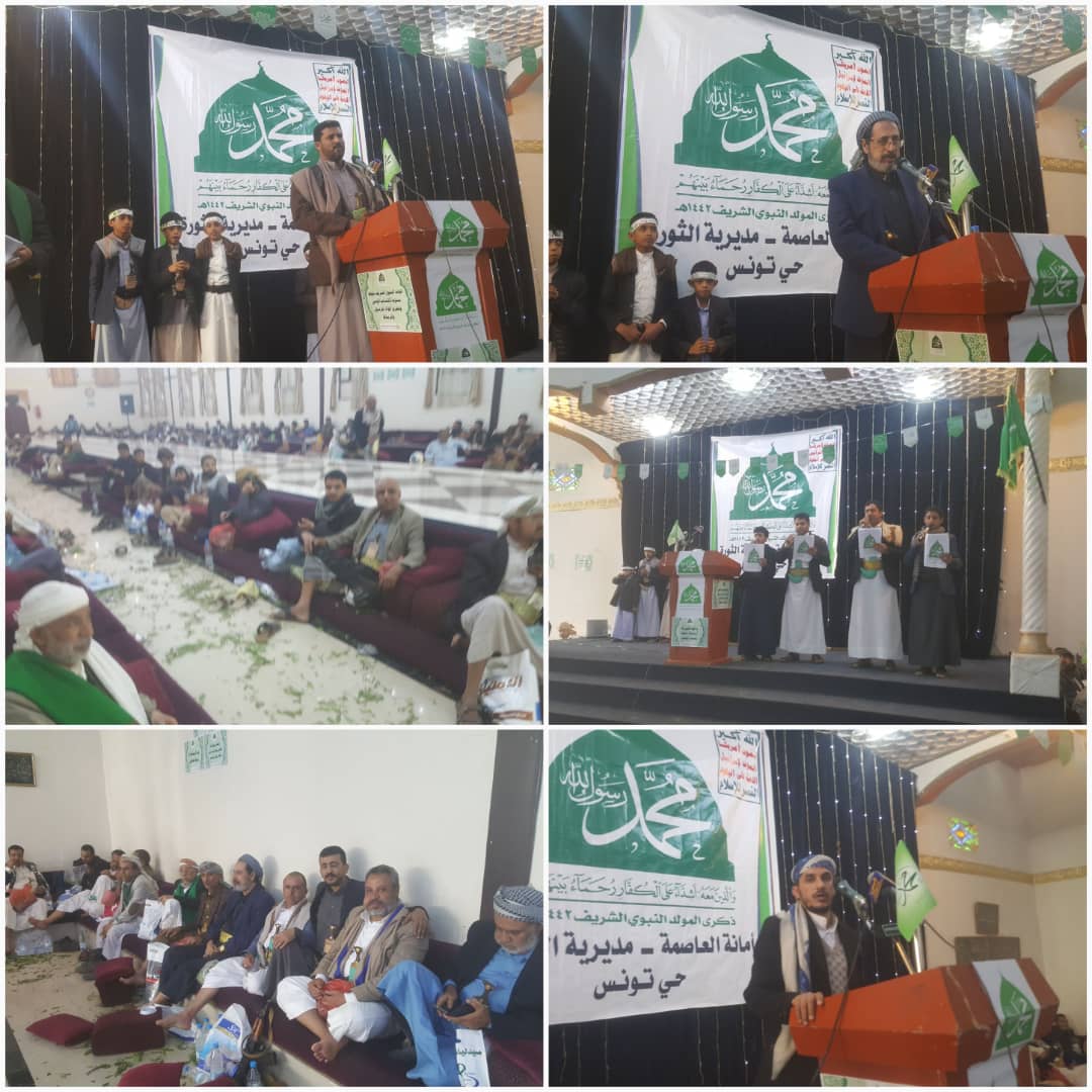 وفي الفعالية التي أقيمت في حي تونس لحارات بير نعيم وبير دهمان وبير الشايف وبير الصباغ والتي حضرها عضوي رابطة علماء اليمن العلامة خالد موسى والعلامة طه الحاضري وأعضاء مجلس الشورى محمد علي الحوثي والشيخ محمد المصري وخالد السياغي وعضو الهيئة الادارية بالأمانة شرف الهادي ومدير عام مديرية الثورة محمد حمود الدرواني ونائب مكتب الصناعة بالأمانة عبود العنسي ومشرفي أحياء تونس والحصبة الشمالية عبدالقادر الجرموزي والقاضي علي حميد الدين وعلي الكحلاني وعضو المجلس المحلي يحي غيلان ومشرفي الاحياء والثقافيين والاجتماعيين وعقال الحارات .