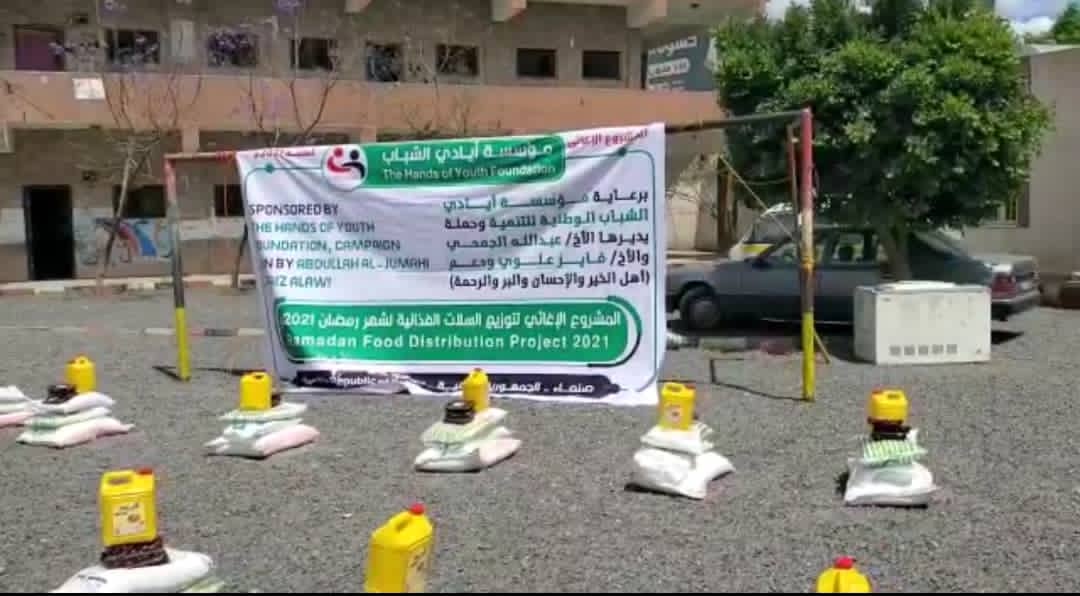 وزعت مؤسسة أياد الشباب للتنمية اليوم بالتنسيق مع المكتب الأشرافي بالحي سلات غذائية على الأسر الأشد فقراً بحي أزال الشرقية مديرية السبعين وذلك بمناسبة شهر رمضان المبارك والتي تستهدف مايقارب 1000 أسرة فقيرة .