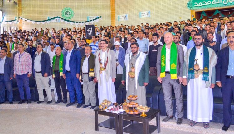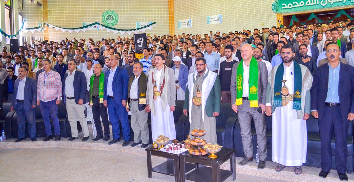 نظمت جامعة صنعاء وملتقى الطالب الجامعي اليوم الاثنين ، فعالية خطابية احتفاء بذكرى المولد النبوي الشريف.