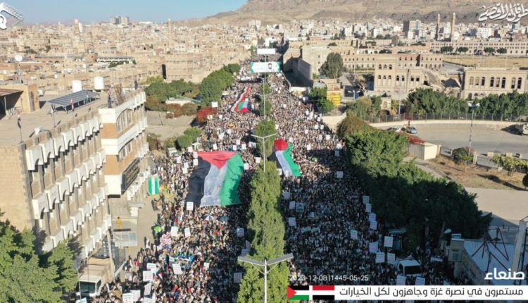 جموع غفيرة تحتشد بأمانة العاصمة تأكيداً على الموقف الثابت تجاه دعم القضية الفلسطينية