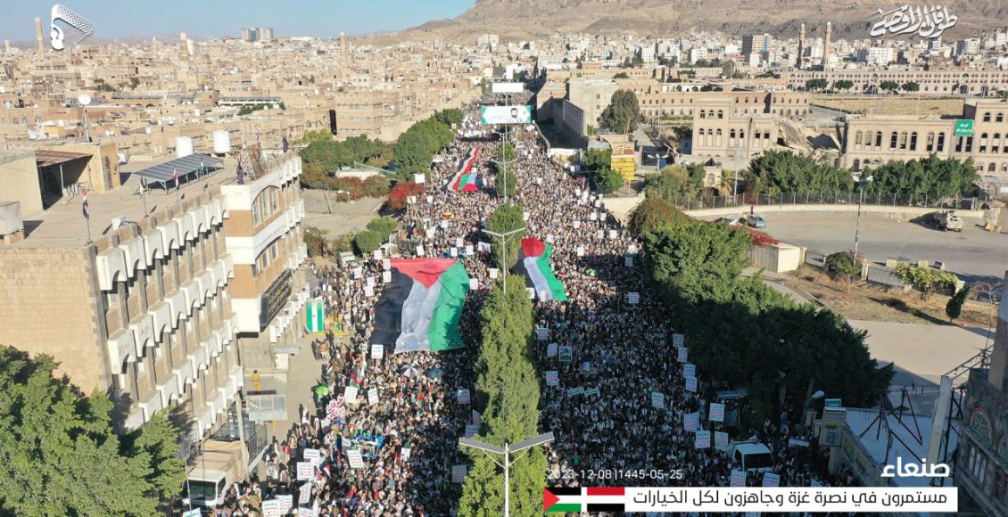 وأكدت الحشود أن موقف الشعب اليمني موقف ايماني وانساني ثابت في نصرة أبناء فلسطين الذين يتعرضون لمجازر وإبادة جماعية بشعة منذ شهرين من قبل العدو الصهيوني الغاصب بدعم أمريكي وتواطؤ دولي وعربي.