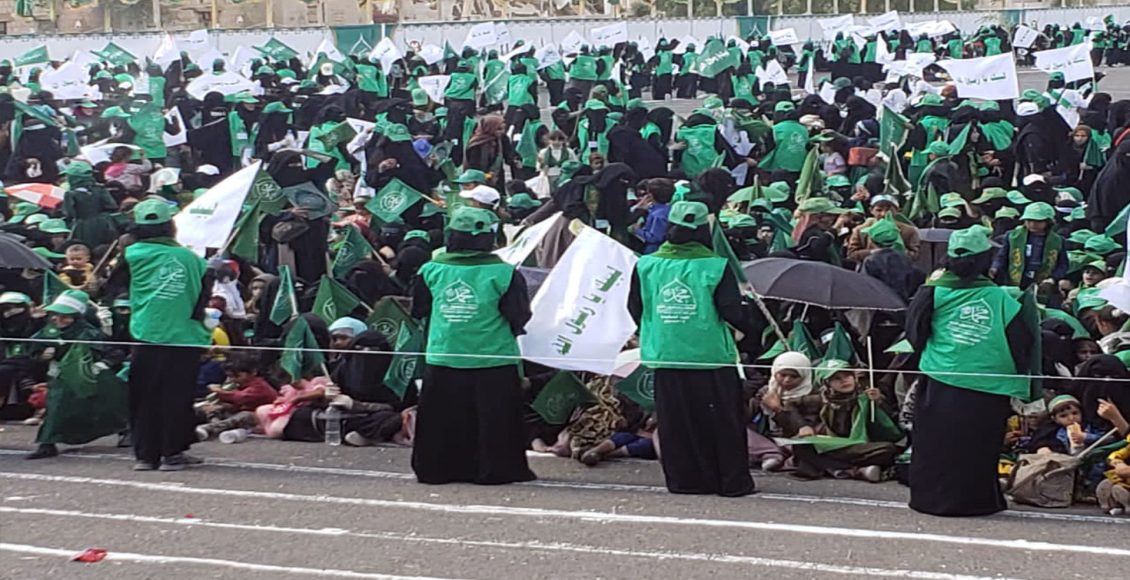 واستمعت المشاركات في المسيرة إلى كلمة قائد الثورة السيد عبدالملك بدرالدين الحوثي بمناسبة ذكرى المولد النبوي الشريف.