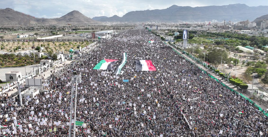 شهدت العاصمة صنعاء اليوم الجمعة ، طوفانا بشريا في مسيرة “انتصارا لغزة عملياتنا متصاعدة” تضامنا مع الشعب الفلسطيني وتنديدا باستمرار الكيان الصهيوني في ارتكاب المجازر في غزة.