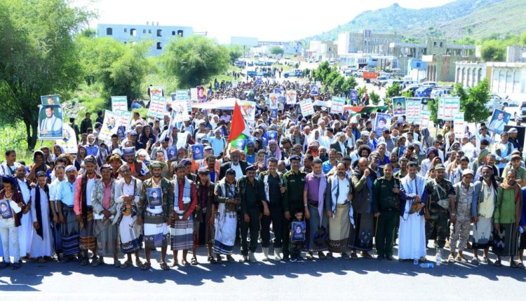 خروج جماهيري كبير في 13 ساحة بتعز إحياء للذكرى الأولى لانطلاق عملية طوفان الأقصى