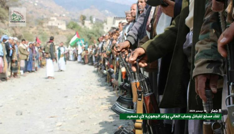 نُظمت بمديرية وصاب العالي محافظة ذمار اليوم وقفة قبلية مسلحة حاشدة تنديدا بالإساءة الأمريكية الممنهجة للمصحف الشريف.