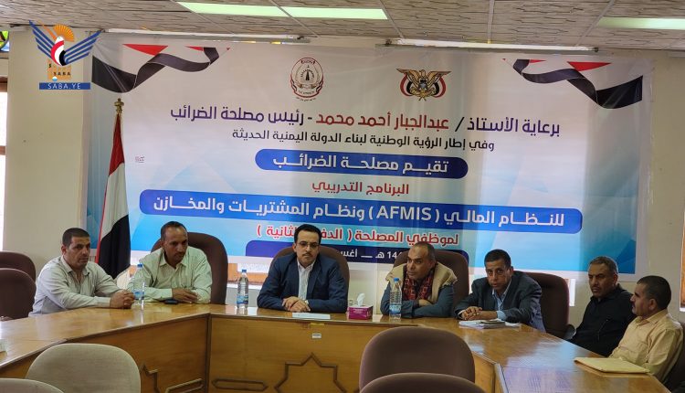 دشن رئيس مصلحة الضرائب عبدالجبار أحمد محمد اليوم دورة تدريبية حول نظام المحاسبة المالية “الأفميس” ونظام المشتريات والمخازن للمجموعة الثانية من موظفي المصلحة وعددهم 40 متدربا.