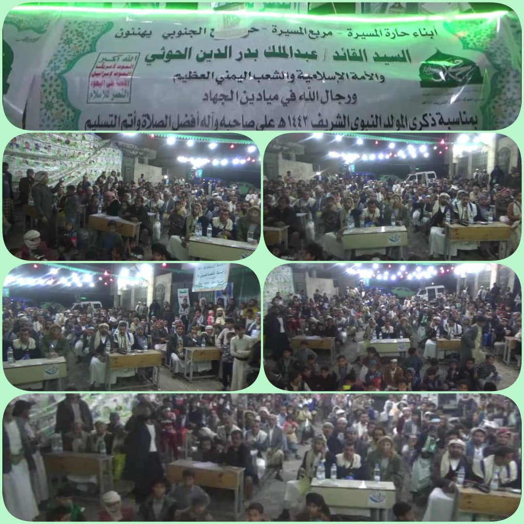 تحت شعار (( محمد رسول الله والذين معه أشداء على الكفار رحماء بينهم )) إبتهاجا وأحتفاء بمولد خير خلق الله محمد رسول الله صلى الله عليه وآله وبحضور رسمياً وشعبياً متميز أحياء أبناء ووجهاء وعاقل ومشايخ مديرية معين مساء الجمعة الموافق 16 أكتوبر 2020م ذكرى المولد النبوي الشريف على صاحبه وآله أفضل الصلاة وأتم التسليم بإقامة سبعة عشر أمسية على مستوى كافة أحياء مديرية معين على النحو التالي ( أمسية بحي الزراعة حارة بستان ناصر – أمسية بحي القبة حارة عبدالله بن مسعود – أمسية بحي عصر حارة العقاب – أمسيتين بحي السنينة الجنوبية حارة التقوى وحارة التقوى الغربية – ثلاث أمسيات بحي السنينة الشمالية حارة الخط الغربي وحارة السلام الجنوبية وحارة النصر – ثلاث أمسيات بحي مذبح الجنوبي حارة المسيرة وحارة النصر وحارة المنتزهات الشمالية الخمسين – ثمان أمسيات بحي مذبح الشمالي وشملان حارة الصافية الشرقية وحارة الرافة الشرقية وحارة المهندسين وحارة عبدالرحمن الداخل وحارة الجوية الدفاع والطيران وحارة سام وحارة الدفاع والطيران الجوية الغربية وحارة الحارث ).*
