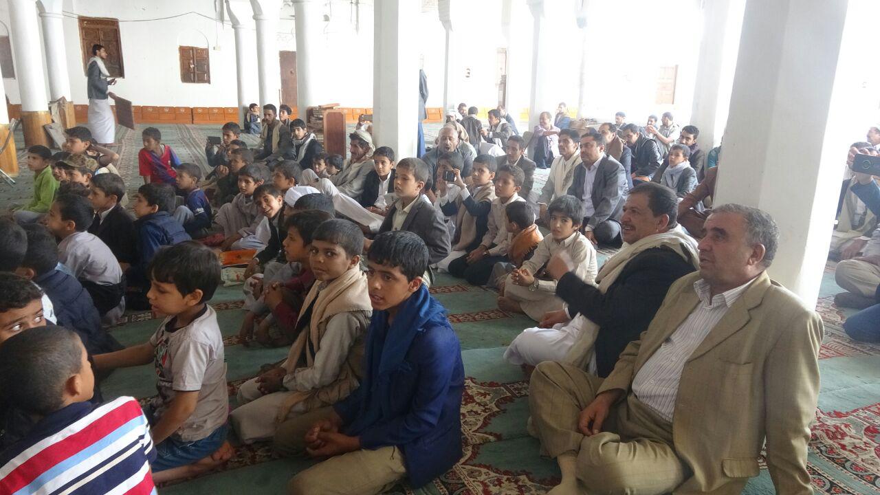 اقيم خلال الإفتتاح برنامج اعده طلاب المراكز الصيفية بدات بالقران الكريم والحديث وكلمة ترحيبة القاها مشرف عام مديرية المديرية الشيخ حمد الشريف رحب بكل الاباء ومدراء مكاتب التربية ووجهاء ومشرفي انصار الله