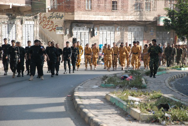 نُظم اليوم السبت عرض عسكري للوحدات الأمنية واللجان الشعبية في امانة العاصمة صنعاء.