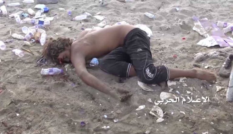 شاهد بالصور.. مرتزقة العدوان يفرون من موقع الدفاع بميدي مخلفين وراءهم 41 جثة.