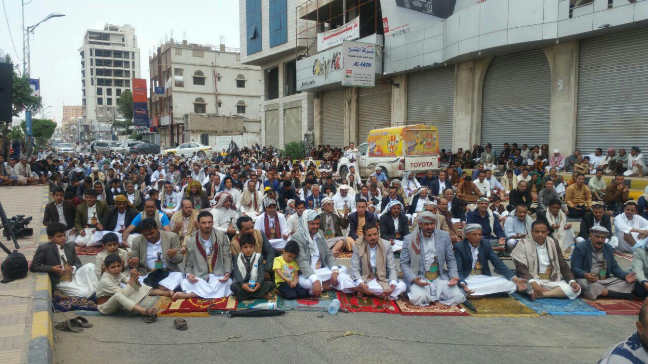 نظم موظفو شركة النفط اليمنية والنقابات والهيئات التابعة لها المعتصمين امام مكتب الأمم المتحدة بصنعاء اليوم عقب صلاة الجمعة وقفة احتجاجية ، للتنديد بإستمرار العدوان الأمريكي السعودي.
