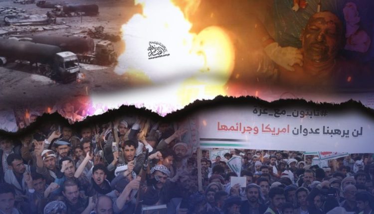 ففي جمعة “ثابتون مع غزة، مستمرون في مواجهة التصعيد الأمريكي والإسرائيلي” التي خرجت الجمعة في أكثر من ألف ساحة، سطر الشعب اليمني موقفا تاريخيا بخروجه الواسع، والذي تزامن بعد يوم فقط من إقدام العدو الأمريكي على ارتكاب مجزرة مروعة في ميناء رأس عيسى أفضت إلى استشهاد وإصابة 245 مدنياً وفق وزارة الصحة والبيئة.