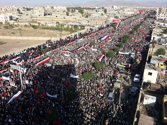 انطلقت عصر اليوم الأربعاء في شارع الستين الشمالي بالعاصمة صنعاء مسيرة جماهيرية حاشدة شارك فيها عشرات آلاف المواطنين تحت شعار “أباة الضيم” احياءً لذكرى عاشوراء.