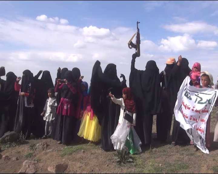 نظم القطاع النسائي في جبل النبي شعيب بمديرية بني مطر اليوم الثلاثاء وقفة احتجاجية للتأكيد على الاستمرار في خيار الصمود والتنديد بالجرائم الوحشية للعدوان بحق الأطفال والنساء التي يتحمل مسؤوليتها الأمم المتحدة والمجتمع الدولي.