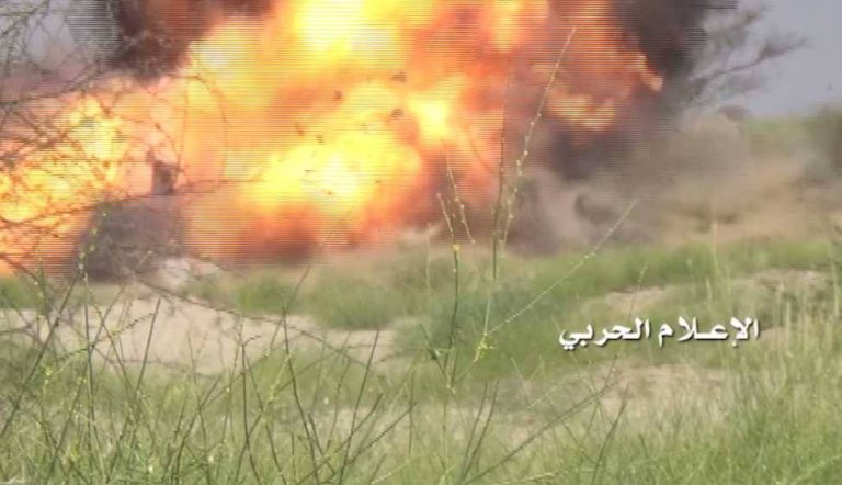 صور | تفجير مدرعة سعودية غرب موقع مثعن بجيزان.