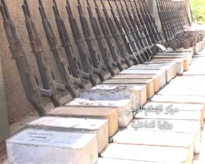 وكان المخزن المضبوط يحتوي على أربعين آلي و معدل إثنا عشر سبعة وأكثر من 100 صفيحة تنوعت بين ذخيرة الآلي والشيكي والمعدل وكذلك 75 قنبلة يدوية روسية الصنع تم ضبطها في منطقة الماهوب بمديرية الحسينية جنوب محافظة الحديدة.