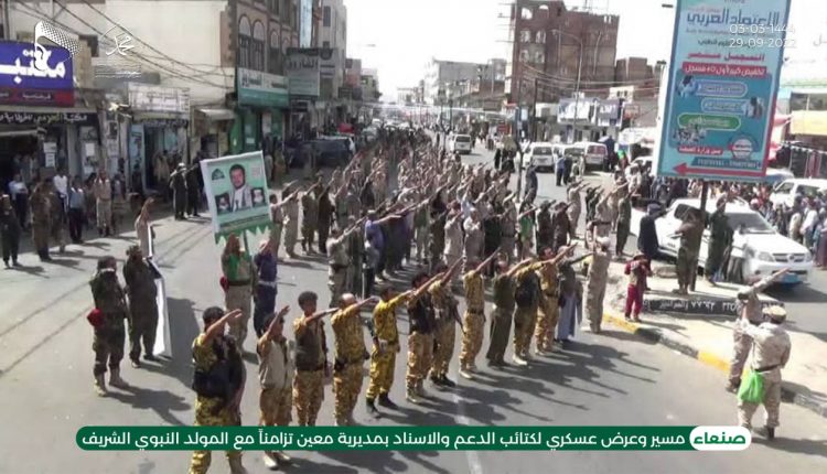 صور عرض عسكري في مديرية معين بمناسبة ذكرى المولد النبوي الشريف On سبتمبر 29, 2022 Share ✳️ ? صور من المسير والعرض العسكري لكتائب الدعم والإسناد بمديرية #معين في العاصمة #صنعاء تزامناً مع #المولد_النبوي_الشريف 03-03-1444 | 29-09-2022 ✳️ t.me/MawlidYE Share FacebookTwitterGoogle+ReddItWhatsAppPinterestEmail