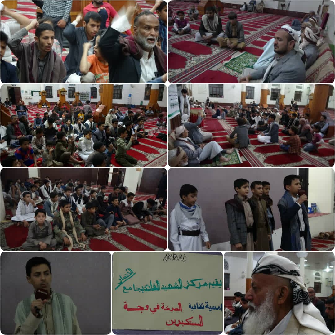 أقام طلاب مركز الشهيد القائد بحي القبة بمديرية معين، مساء اليوم، أمسية ثقافية وخطابية بالمركز الصيفي المغلق بمديرية معين.