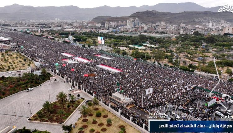 وجددت الحشود المليونية، التأكيد على استمرار موقف اليمن القوي والثابت المناصر لغزة والشعبين الفلسطيني واللبناني ومقاومتهم الباسلة، ومواصلة المضي على خطى الشهداء في العطاء والبذل والتضحية لردع كل طواغيت العصر.