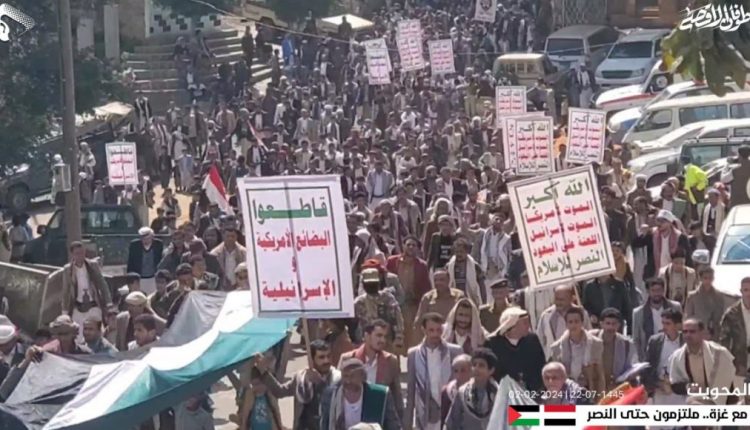 وندد أبناء المحويت بالعدوان الأمريكي البريطاني على اليمن.. مجددين التأكيد على ثبات موقف الشعب اليمني في نصرة الشعب الفلسطيني ومقاومته الباسلة.