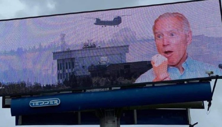 على خلفية الهزيمة في افغانستان.. صور ساخرة للرئيس بايدن في شوارع أمريكا