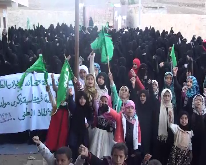 نساء مديرية الجراف احتفين بمولد النور المرسل محمد وبعثن من خلالها رسالة تحد إلى العدوان السعودي الأمريكي.