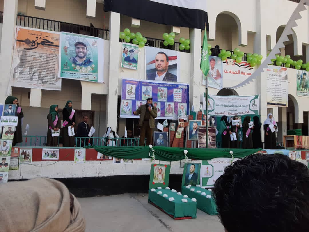 بعدذلك النشيد الوطني بعدذلك تنوعت وتعددت الكلمات لفريق الاعلام المدرسي حيث كانت البدايه نبذة عن الشهيد والمجاهدالبطل محمد السياغي ورساله الى عم الشهيدزيدابو منصروالتى قدمتهاالطالبةبراء فوازابو منصربعدذلك قدم فريق المسرح مسرحيةعن الشهيد من اعدادطلاب الصف السادس والسابع ومن اشراف الأستاذ/ عادل عزان مدرس مادة القرآن بعدذلك قدم طلاب المدرسه انشودة بعنوان تحيه لمن سارعلى درب الشهداءامتزجت برقصه البرع بعدذلك كرمت ادارة المدرسه والضيوف الحاضرين أسر الشهداء بالشهائد التقديريه عرفانامنهم بماقدمه الشهداء من تضحيات من اجل عزةوكرامه اليمن عرضاوانسانا التحيه والتقديرلاداره المدرسه ولكل العاملين فيهاعلى حسن الاعداد والتحضيرلهذه الفعاليه الرائعه وكذلك الشكرلفريق الاعلام المدرسي على ماقدموه من فقرات جميله نالت استحسان الحاضرين …..